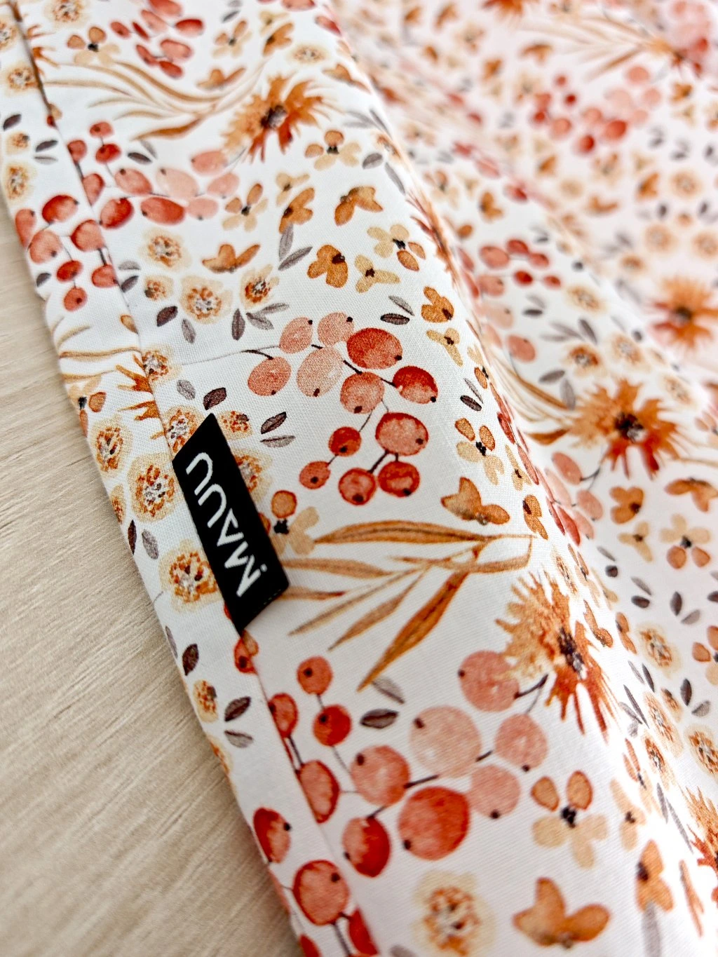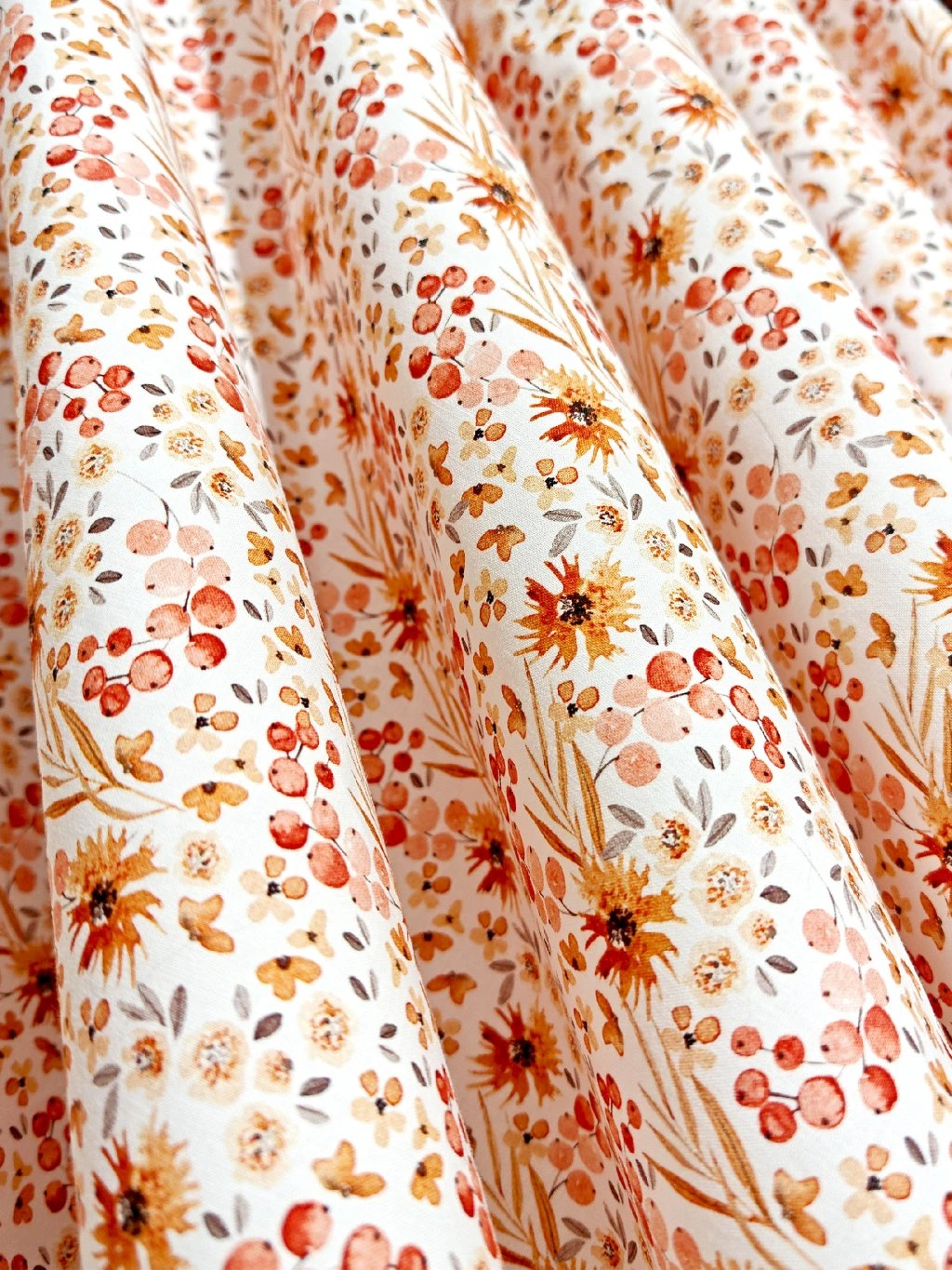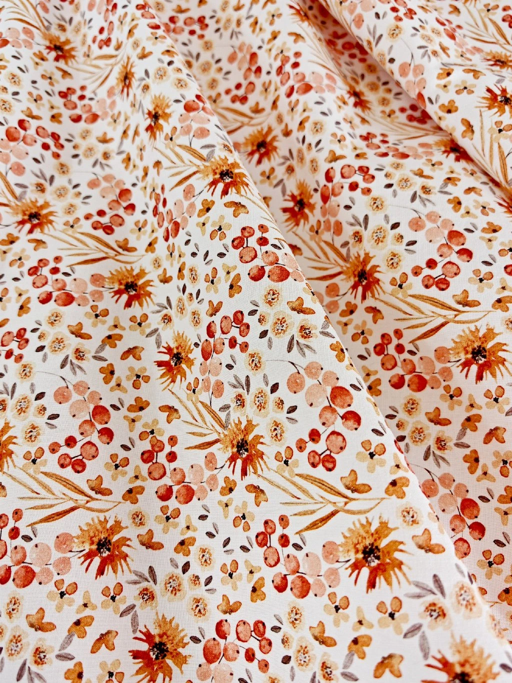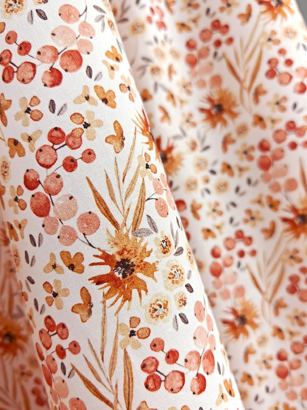 Kolová sukně AMELIA Zralé tóny působí jako pozdní léto zachycené v jemném detailu. Drobný květinový motiv v teplých, přírodních odstínech vytváří harmonický celek, který je ženský, klidný a přirozeně elegantní. Vzor nepůsobí výrazně na první pohled - jeho krása se rozvíjí postupně, v pohybu i zblízka. Kolový střih dodává sukni lehkost a plynutí, díky kterému působí uvolněně a přitom upraveně. Je to model, který se snadno stane součástí každodenního šatníku - nenápadný, ale promyšlený v každém detailu.