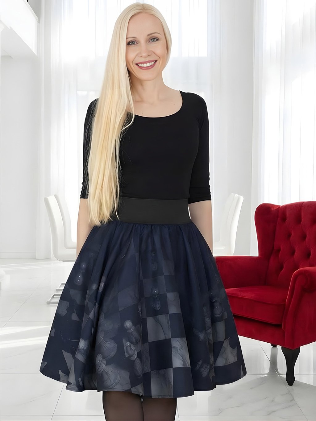 Luxusní kolová sukně do společnosti, do kanceláře, ale i do města nebo jen tak na procházku. Exkluzivní, na dotek velice příjemný nemačkavý materiál s nádhernými vzory. Kolová sukně ANNI krásně modeluje postavu přesýpacích hodin - nosí se v pase, schová nedokonalosti a podtrhne ženské křivky. Pas je pružný a použili jsme na něj 7,5 cm širokou gumu, která je mírná v tahu, neškrtí a nikde se nezařezává. Díky své šířce nechá v pase krásně vyniknout siluetu postavy. Součástí sukně je barevná saténová stuha do pasu, kterou dle své nálady a příležitosti, kam sukni berete, můžete či nemusíte nosit.