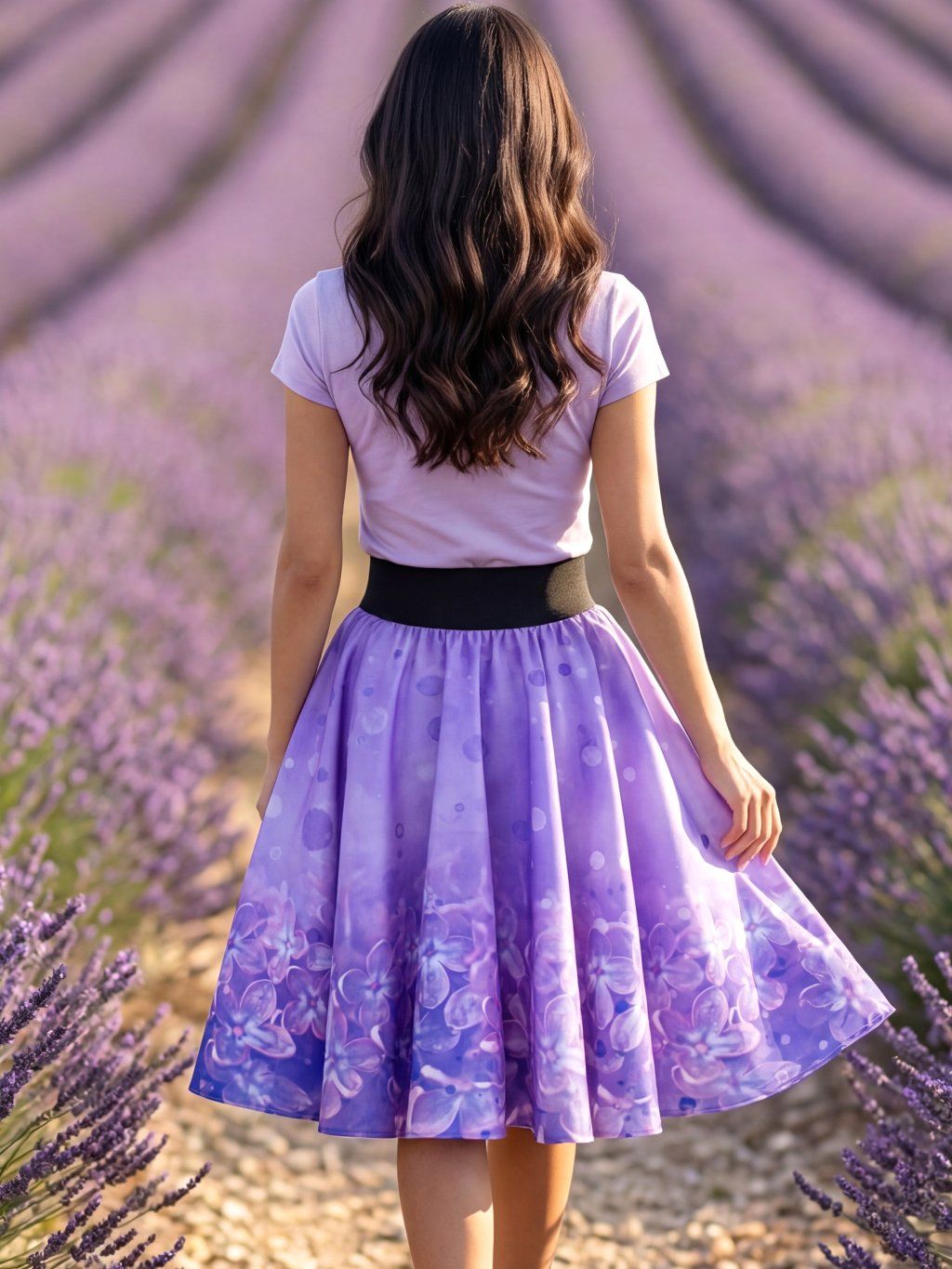 - součástí sukně je světle fialová saténová stuha pro volitelné uvázání v pase