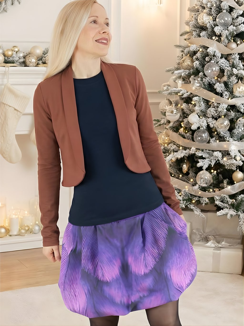 Krátké sáčko NAYA je perfektním kouskem oděvu, díky kterému vykouzlíte dokonalý outfit. Délka je tak akorát do pasu a skvěle si tak rozumí v kombinaci se sukněmi. Zadní díl je oproti přednímu malinko prodloužený a tvarovaný do mírného obloučku. Sáčko má dlouhý rukáv a unosíte jej celoročně. Pružný úpletový bavlněný materiál je nepočesaný, je příjemně měkoučký, tvárný a krásně se tak přizpůsobí vašim křivkám, aniž by někde tlačil.