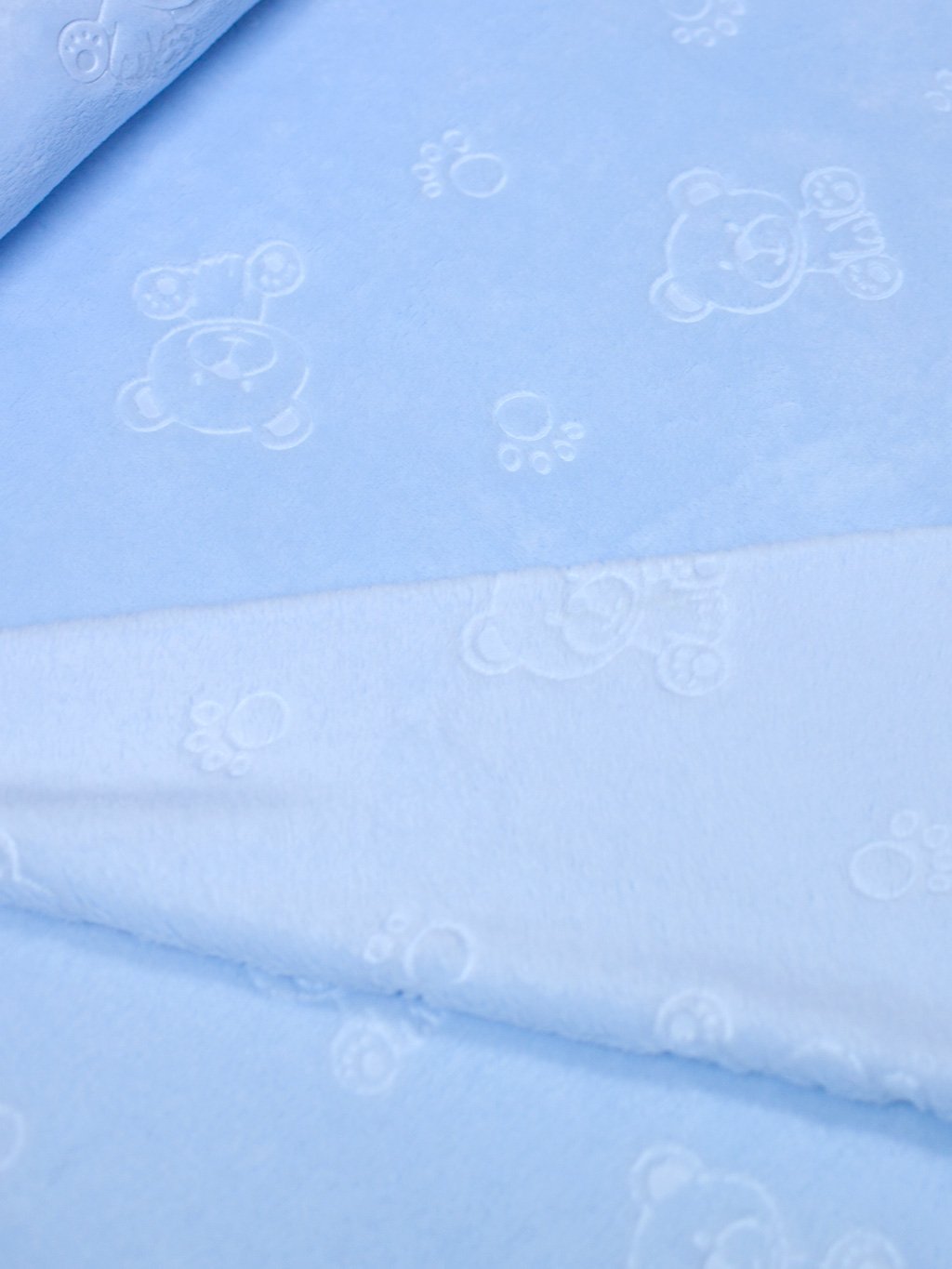 Oboustranná plyšová látka mikroflanel (flanel fleece) je velice heboučká, měkká a na dotek neskutečně příjemná. Jedná se o oboustranný materiál se vzorem vytláčených medvídků - lze použít z obou stran. Perfektně se hodí na čepice, nákrčníky, mikiny, župany, hřejivé deky, hnízdečka pro miminka, pelíšky pro zvířecí miláčky, hračky a další projekty. Nemačká se.