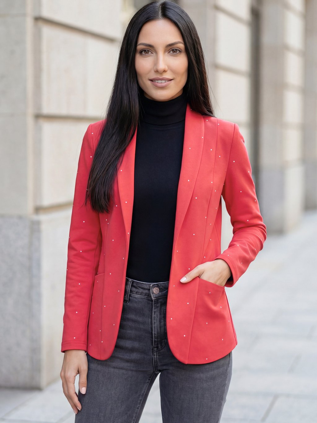 Sako HEY BABY je moderní, delší dámské sako navržené pro každodenní nošení ve městě. Spojuje pohodlí bavlněného úpletu s čistým, upraveným vzhledem, který funguje do práce, na schůzku i na volný den. Není to formální blejzr - je to městský „jacket“ kousek, který si vezmete kamkoliv.