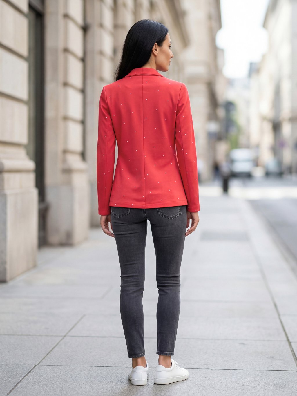 👉 Tón: Sako Hey Baby v odstínu coral red s jemným bílým puntíkem působí svěže, optimisticky a hravě. Teplejší červený tón krásně oživí každodenní outfit.