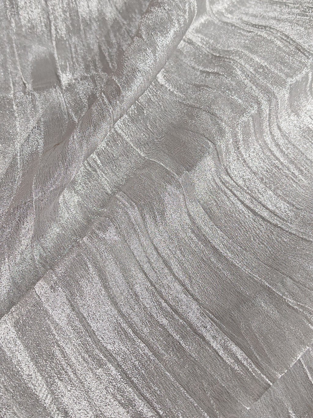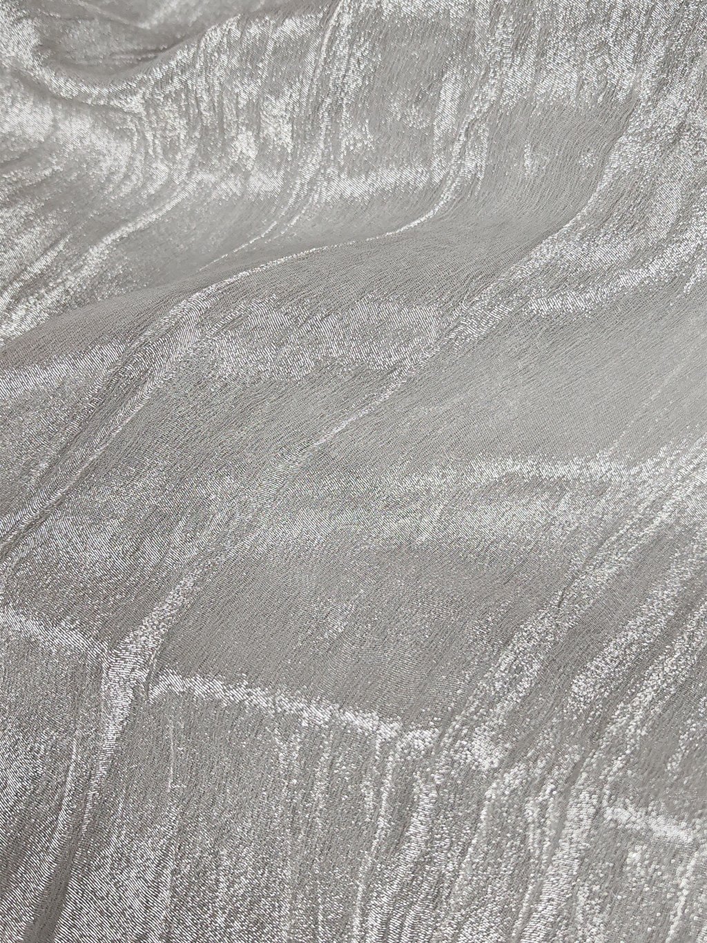 Tato šatovka je velmi lehká, průhledná a nesplývavá - drží tvar. Látka má velmi efektní lesklý stříbrný krešovaný efekt. Skvěle se hodí k ušití plesových či společenských šatů nebo krásné sukně. Látka je průhledná a je nutné ji podšít.