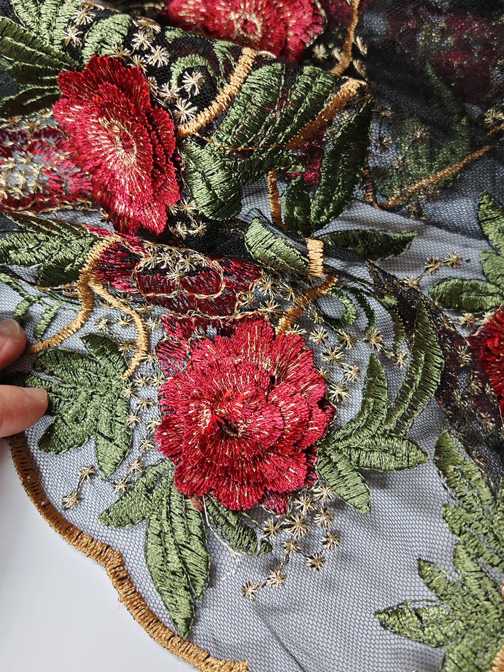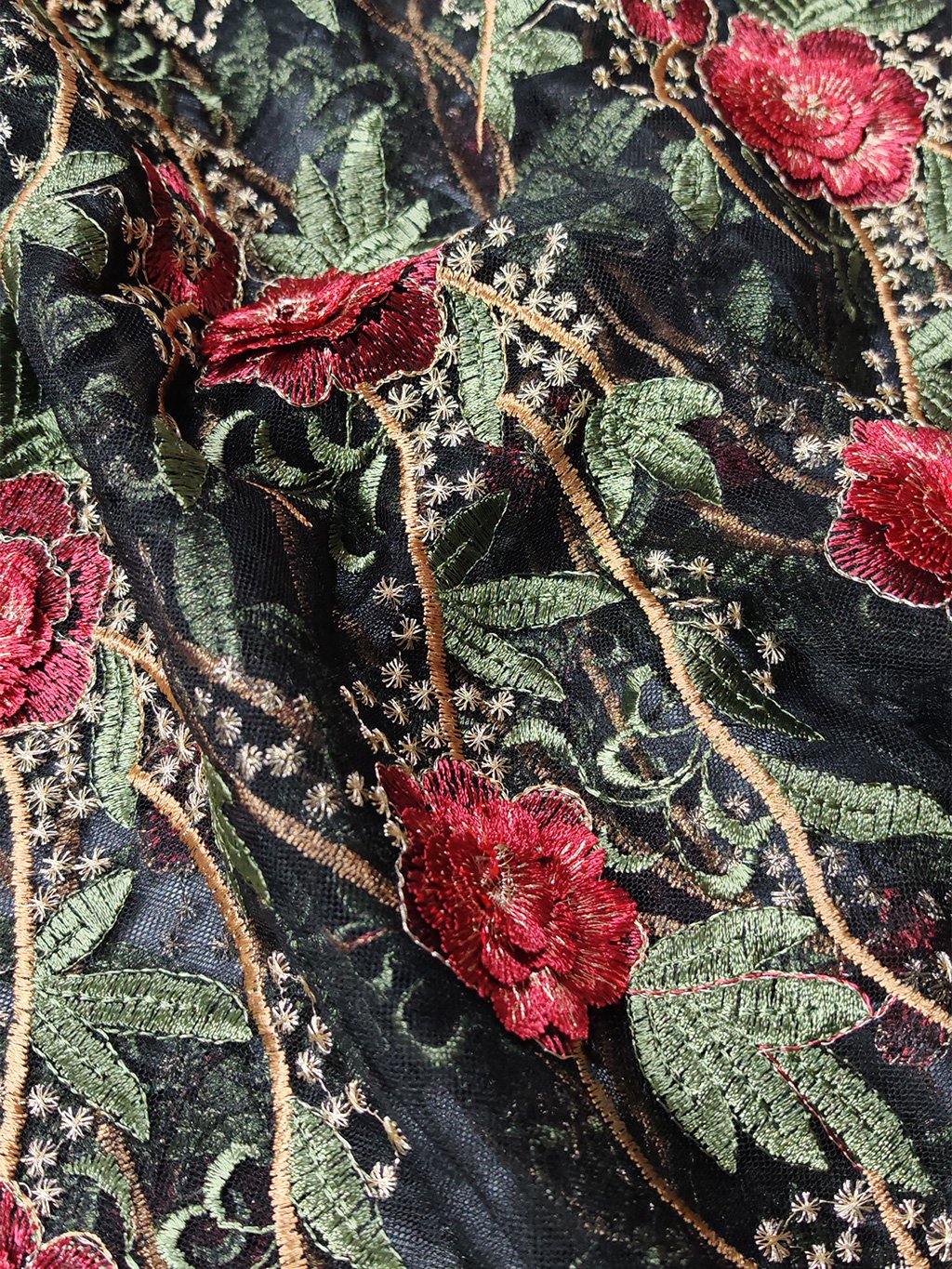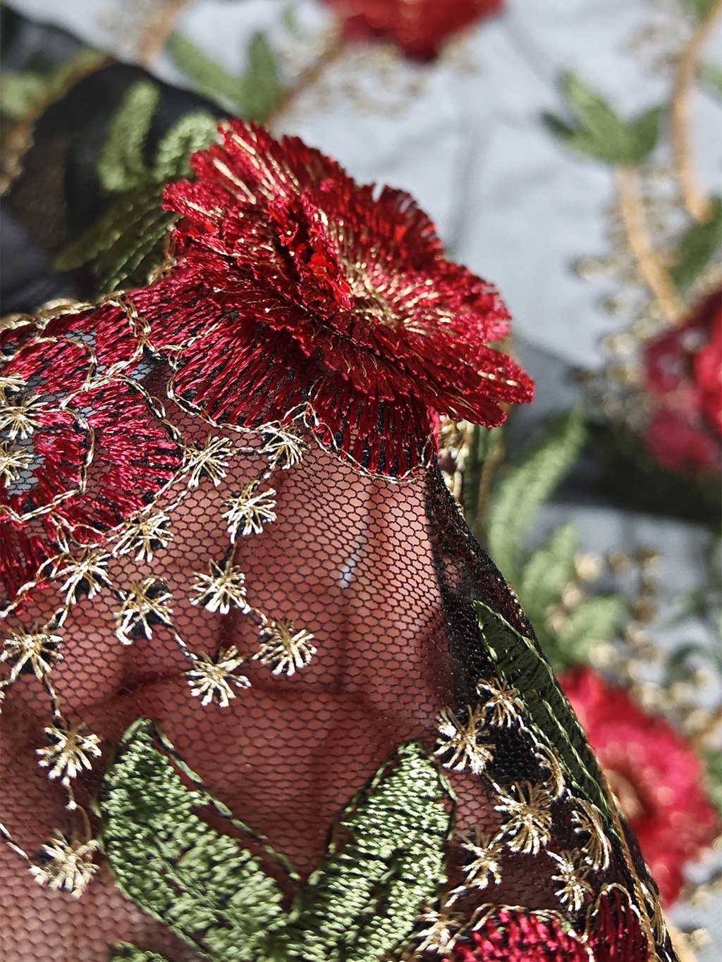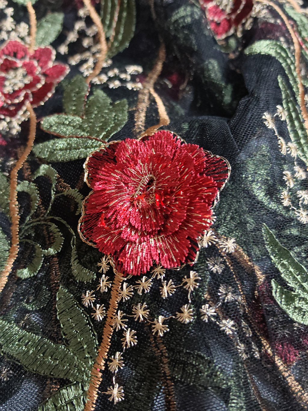 Tyl exclusive extra jemný VYŠÍVANÉ 3D RŮŽE černá