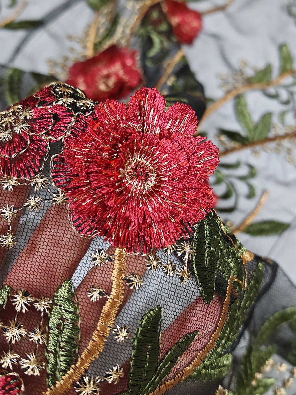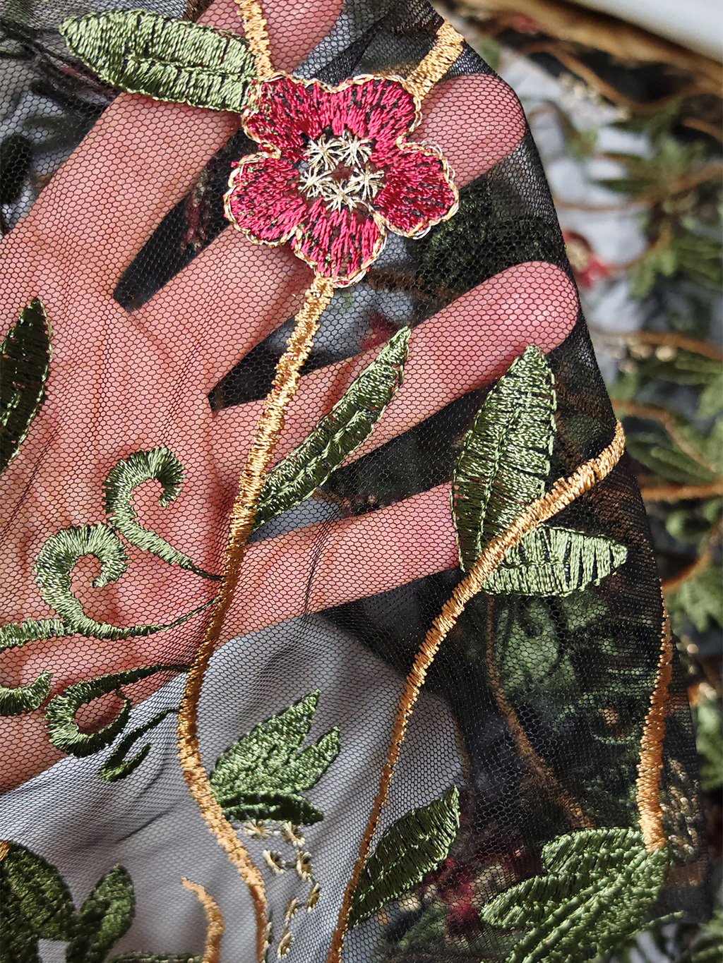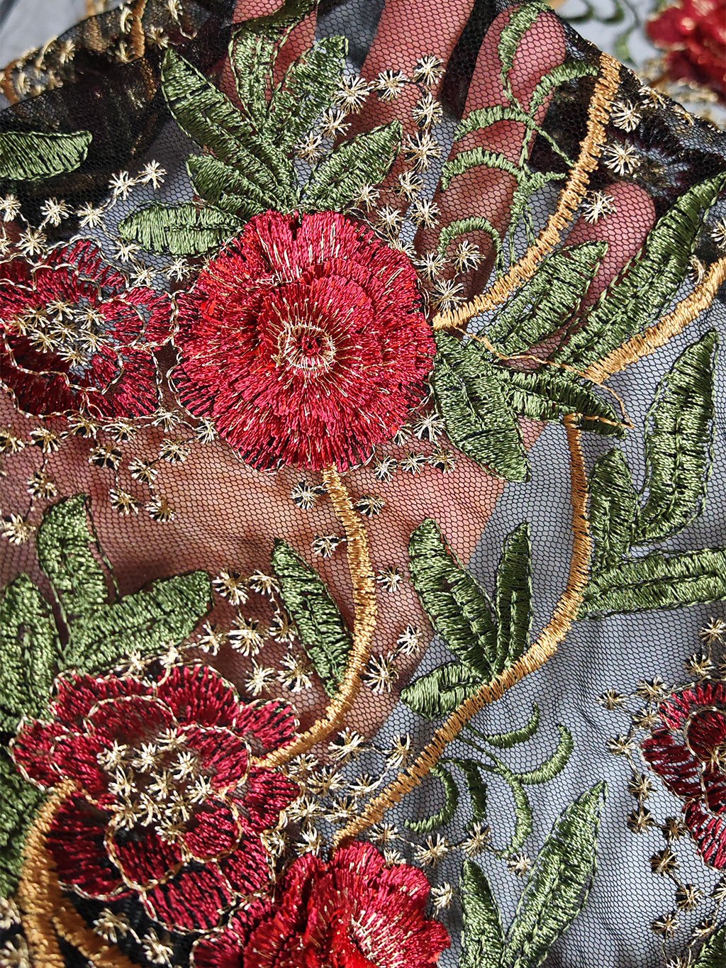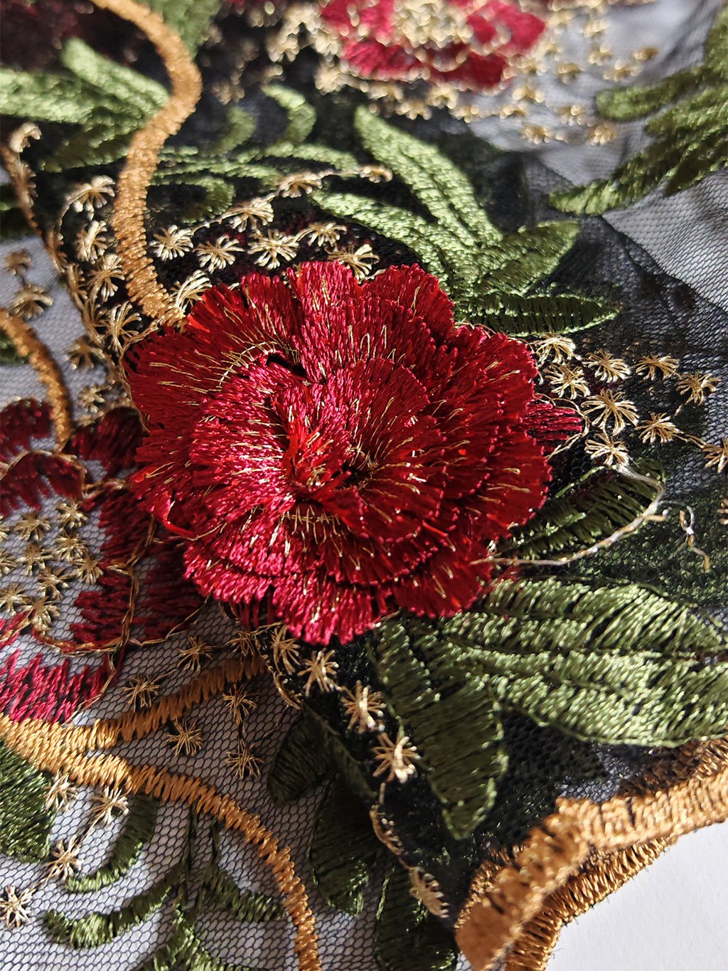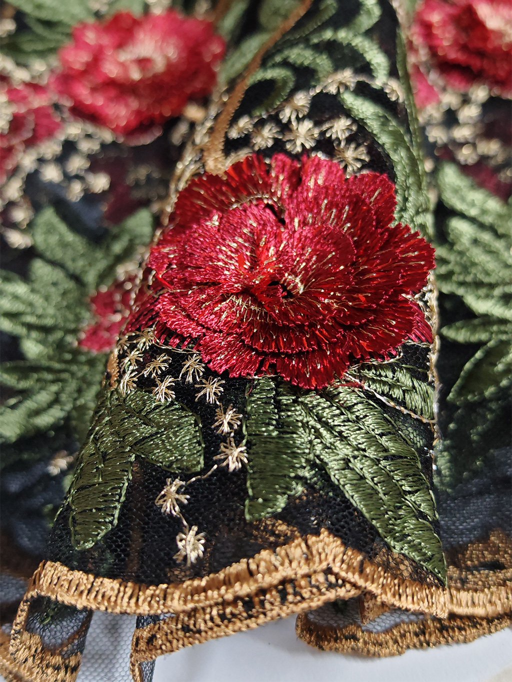 Tyl exclusive extra jemný VYŠÍVANÉ 3D RŮŽE černá