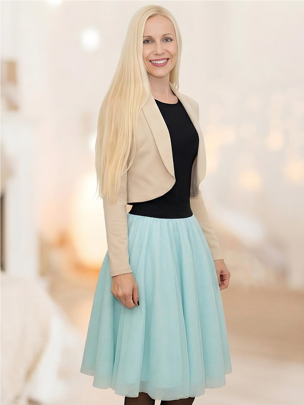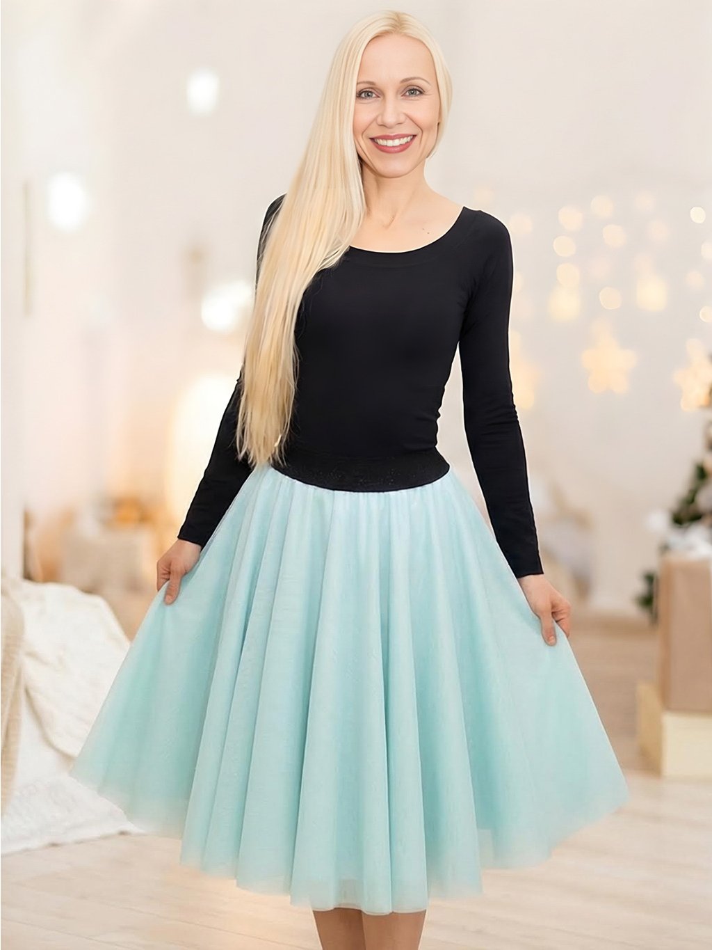 Kdo by nemiloval záplavu tylu! Naše TUTU sukně se skládají z 5-ti vrstev. Exkluzivní měkoučký splývavý tyl je opravdu velmi příjemný, měkký a netrčí, takže sukni využijete i pro každodenní nošení a nejen pro slavnostní příležitosti. Podšívka je ušita z mírně elastického luxusního saténu. Pružný pas do 5 cm široké gumy zajistí, že Vám sukně bezvadně padne bez ohledu na nějaký ten centimetřík.