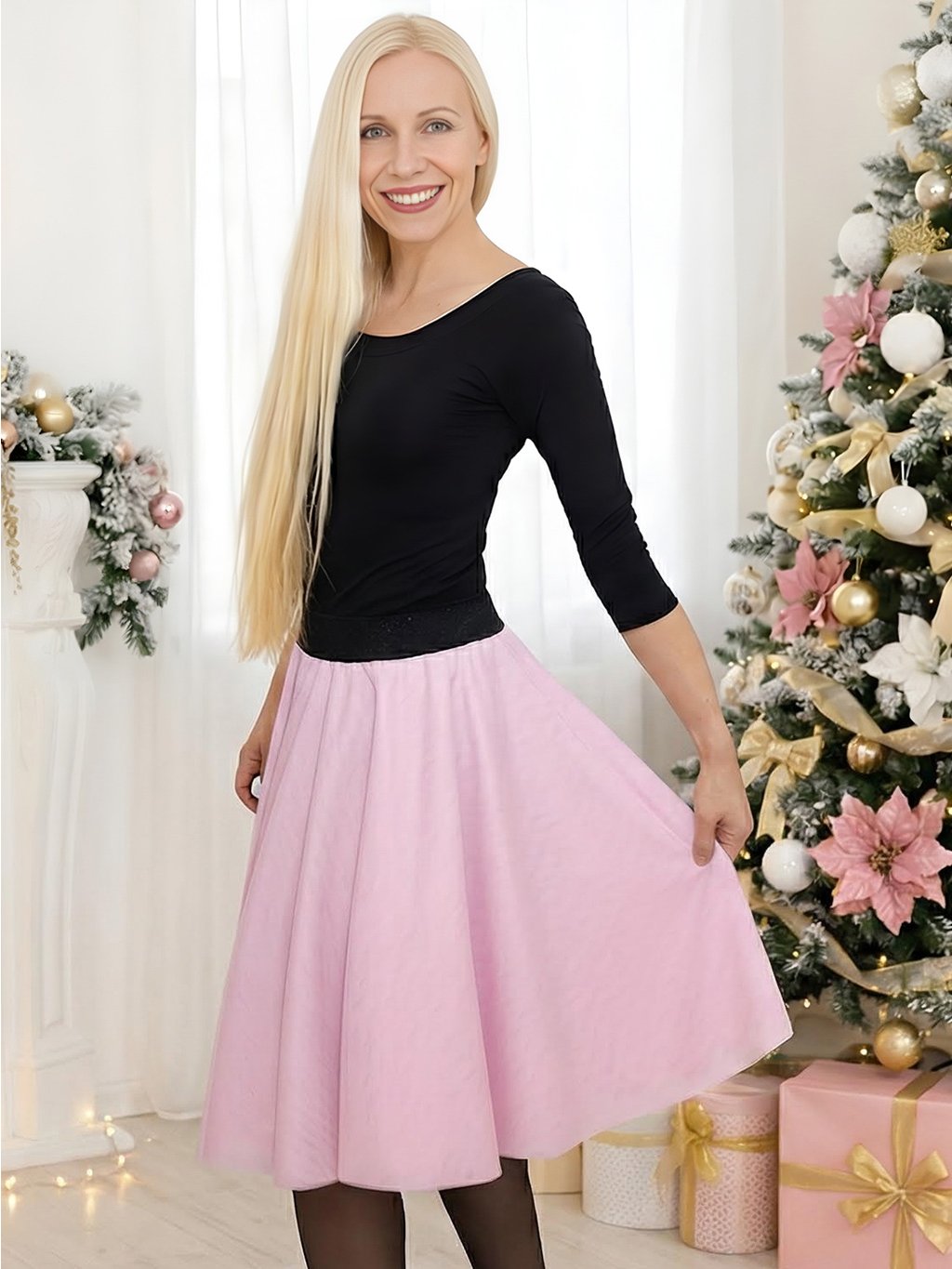 Kdo by nemiloval záplavu tylu! Naše TUTU sukně se skládají z 5-ti vrstev. Exkluzivní měkoučký splývavý tyl je opravdu velmi příjemný, měkký a netrčí, takže sukni využijete i pro každodenní nošení a nejen pro slavnostní příležitosti. Podšívka je ušita z mírně elastického luxusního saténu. Pružný pas do 5 cm široké gumy zajistí, že Vám sukně bezvadně padne bez ohledu na nějaký ten centimetřík.